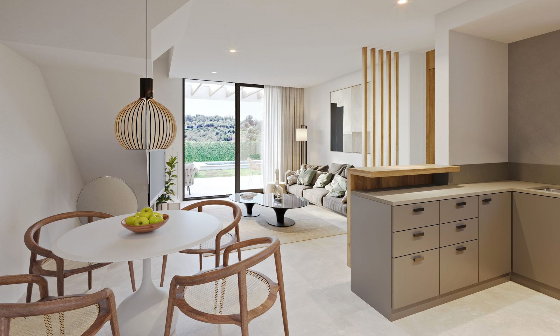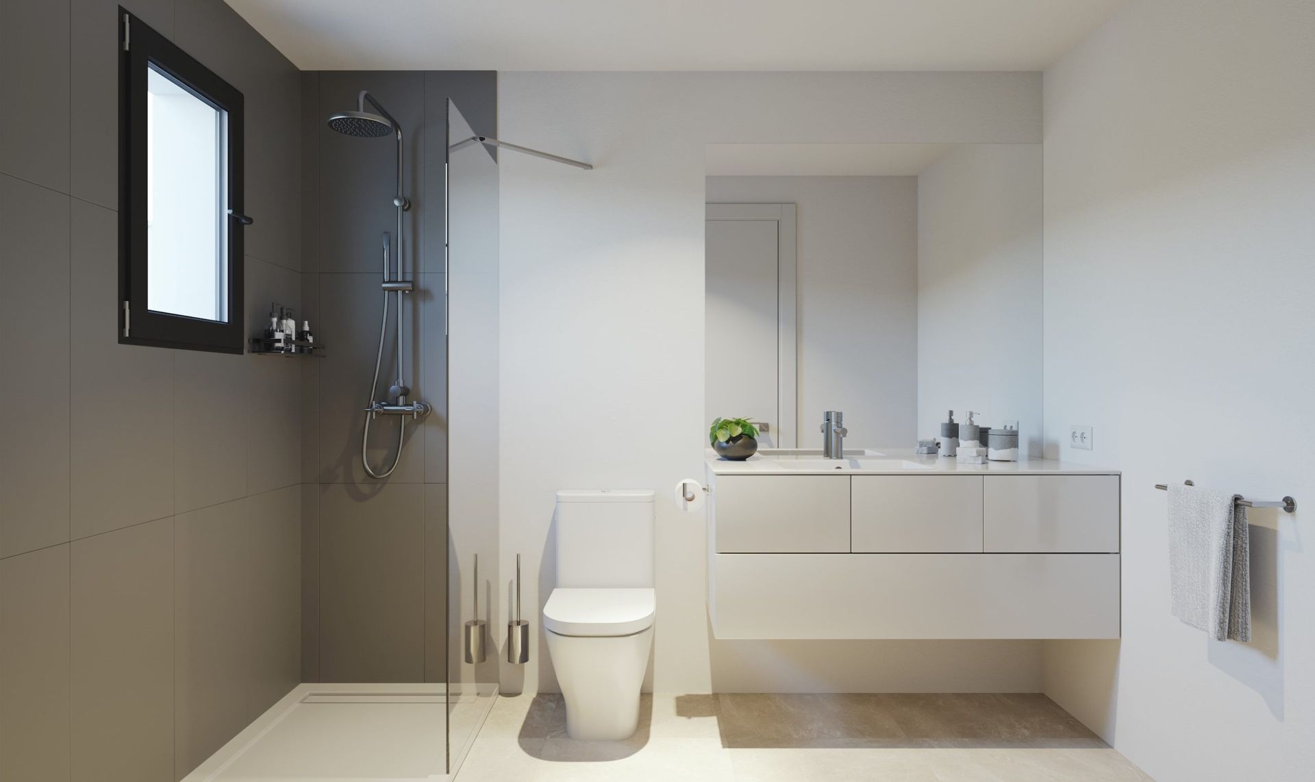 The new residence SUNRISE BAY RESIDENCES is being built in the east of Mallorca in Cala Romantica and is an exclusive residential complex with 158 semi-detached houses and detached villas. It offers well-being and comfort and is an ideal place to live and feel the Mediterranean lifestyle of Mallorca. Villas and semi-detached villas of different typologies with 2, 3 and 4 bedrooms, 75 m2 to 150 m2 living areas, all with outdoor parking, garden, pergola and terrace. SUNRISE BAY RESIDENCES offers the perfect balance between comfort, leisure and tranquillity. The international airport of Mallorca can be reached in about 50 minutes by car and the city centre of Palma de Mallorca in about 1 hour by car. Mallorca’s second largest town Manacor is only 20 minutes away by car. Countless beautiful bays and beaches on the east coast are in the immediate vicinity, as are several marinas, tennis clubs and golf courses. The beautiful beach “Estany d`en Mas” is only 5 minutes away from the residence. The indoor and outdoor spa and fully equipped gym will help you lead a healthy lifestyle. The environment has been designed to help you switch off, relax and be pampered. The community also has a private cinema, gastro bar and social space where you can spend time with friends, family and neighbours.